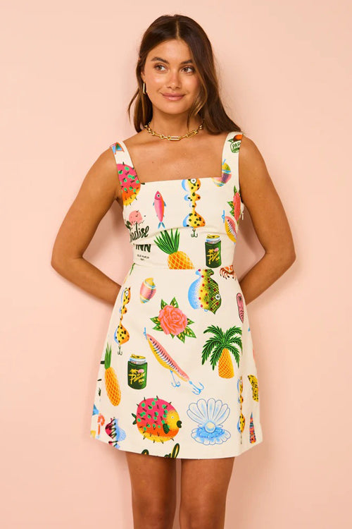 All Up To You Print Tie-Back Mini Dress