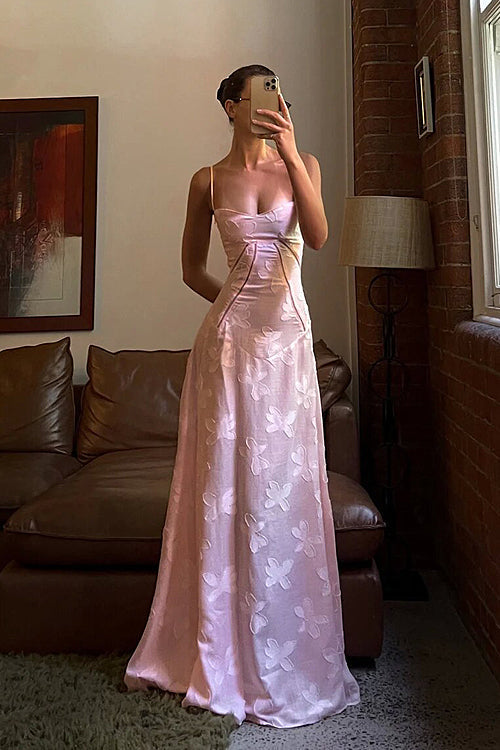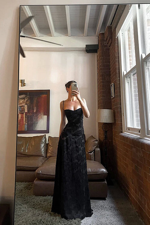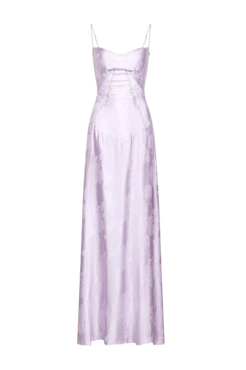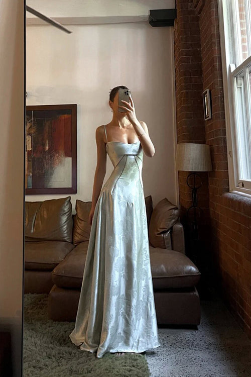 You're sure to sweep them off their feet when you're wearing the Gift Of Love Floral Tie-Back Maxi Dress! Luxe satin jacquard, with a floral motif, shapes a cowl neckline supported by adjustable spaghetti straps, with a subtle V at the back. A high, fitted waist tops an overlapping maxi skirt that falls to the ankles. Hidden zipper/clasp at back. -