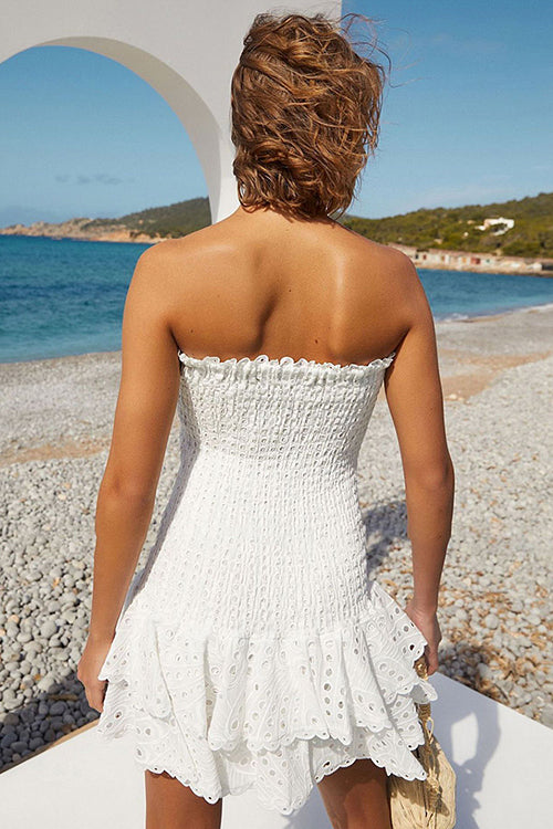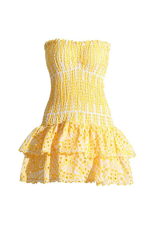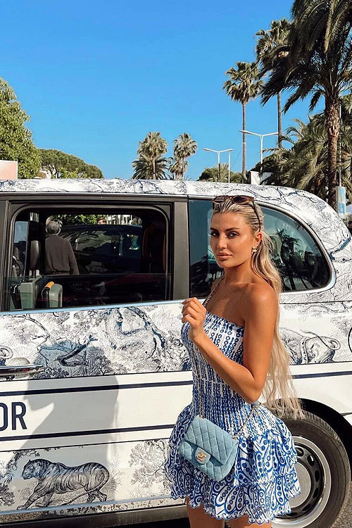 Your two steps to fame starts with our latest exclusive, the Sweet Like You Pleated Mini Dress. As its name suggests, this new conversation starter guarantees ALL eyes on you from dusk to dawn with its strapless frilled torso and matching ruched skirt. Because we're low-key obsessed with details, we've edged the mini dress with asymmetric ruffles! Team yours with perspex block heels and dewy makeup. -